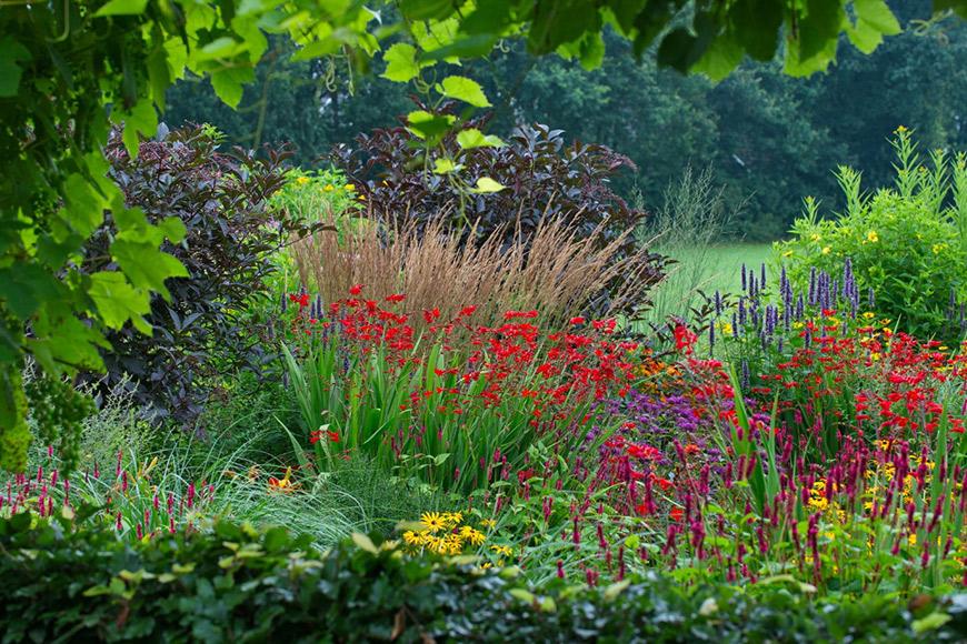 Vanmiddag brengen we een bezoek aan De Hoefslag in Gorssel. Voor eigenaren Mieke en Hans Geerlink is hun tuin geslaagd als bezoekers hier rust ervaren: dit was hun belangrijkste doel en alles in de tuin is hier dan ook op afgestemd. Er is gekozen voor natuurlijke planten, bomen, struiken en grassen die de sfeer bepalen en die aansluiten bij de omgeving. De Hoefslag is dan ook een echte landschapstuin te noemen met in elk jaargetijde natuurlijke kleuren.