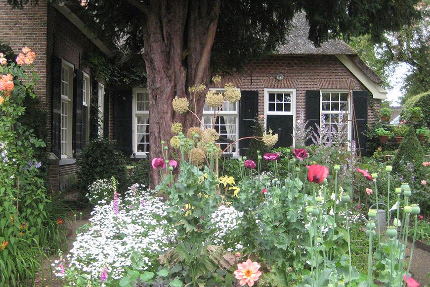 Na het ontbijt gaan we naar In de tuin van Dorth. Deze vrij jonge tuin is door biologe en tuincoach Lily aangelegd op en rondom een vervallen boerderij, op puur ecologische wijze en zonder gebruik van kunstmest en bestrijdingsmiddelen. Het is hier heerlijk wandelen door de cottagetuin die rondom het huis is aangelegd, de moestuin met kruiden en (eetbare) bloemen, een vijver, plantenwal en bloemenweide. Ook dieren zijn hier van harte welkom.
